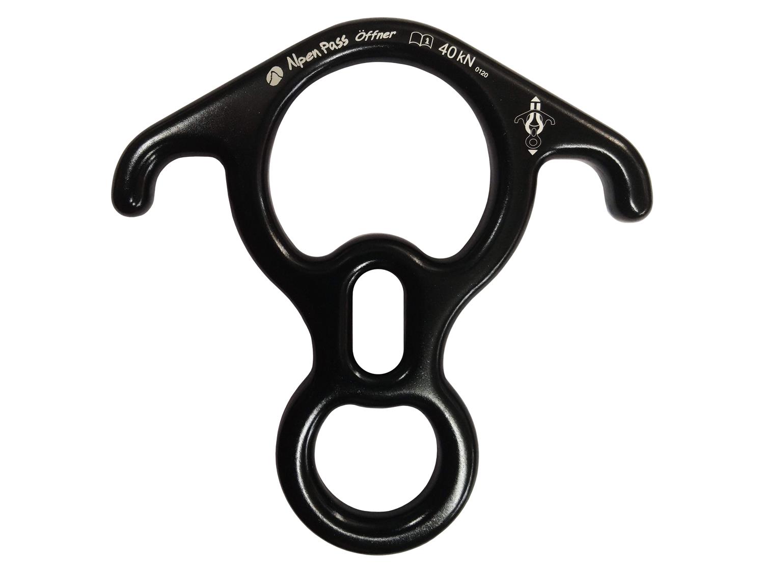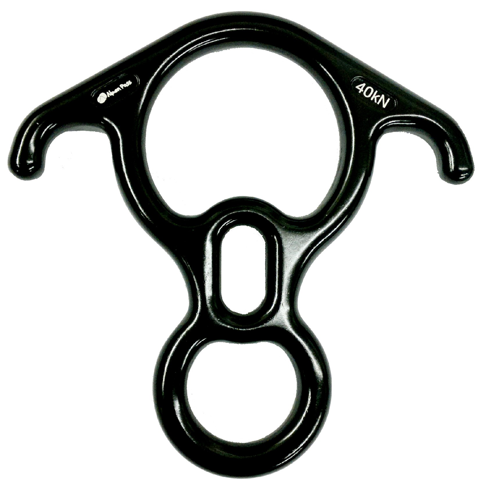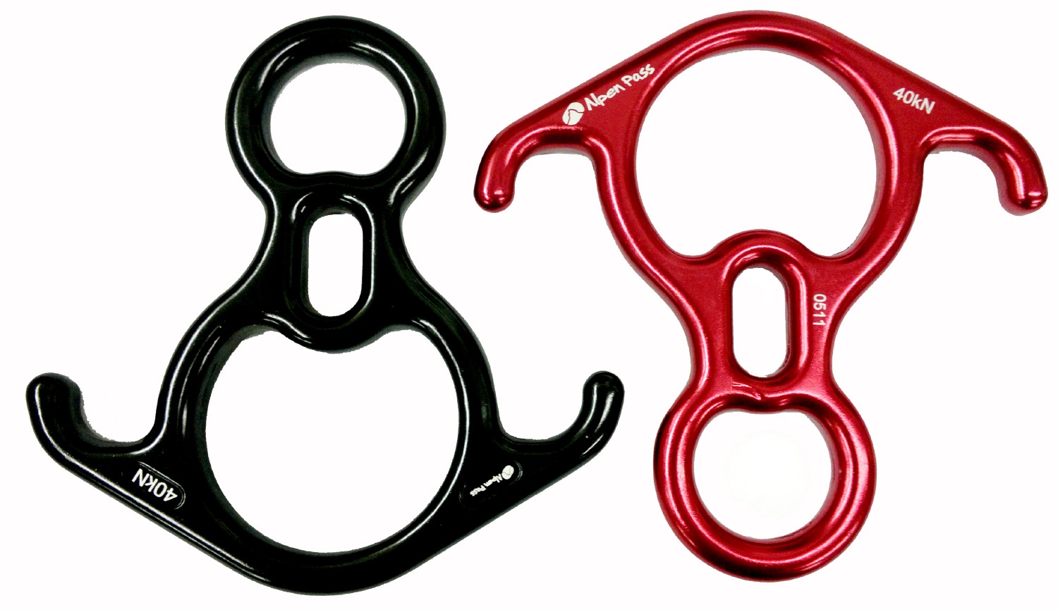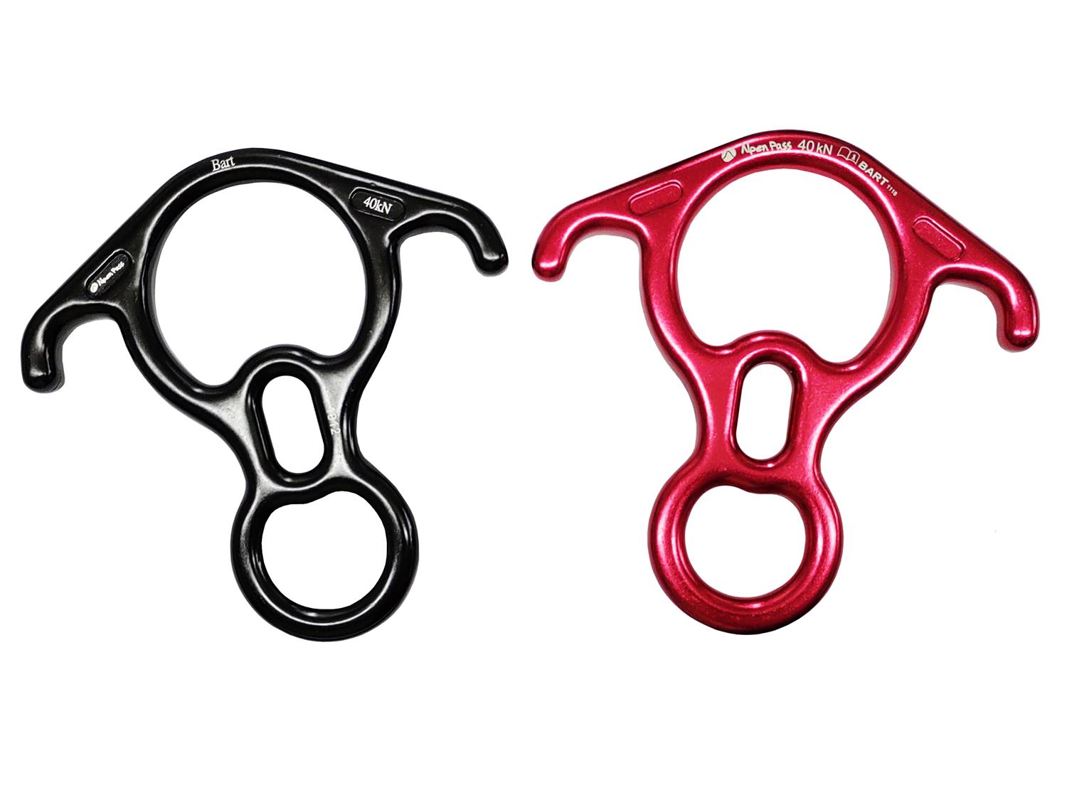 Freio oito de resgate, com orelhas, para salvamentos em altura. Fabricado em duralumínio, para cordas de 9mm a 16mm de diâmetro. Resistência: 40KN. Cores: preto e vermelho. Código: APBART