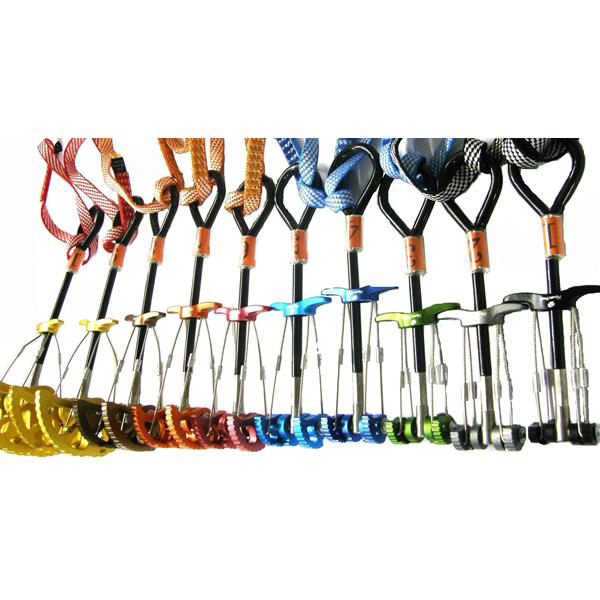 Conjunto de “spring-loaded camming devices” para escaladas com proteção móvel.