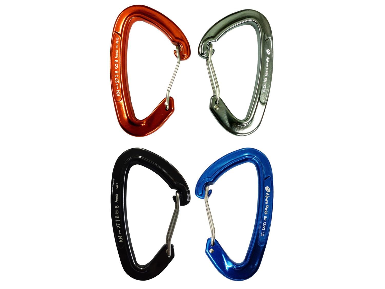 Mosquetão com corpo em alumínio e gatilho de aço (ou wire), sem trava, para montagem de costuras e outros usos. Modelo muito leve.