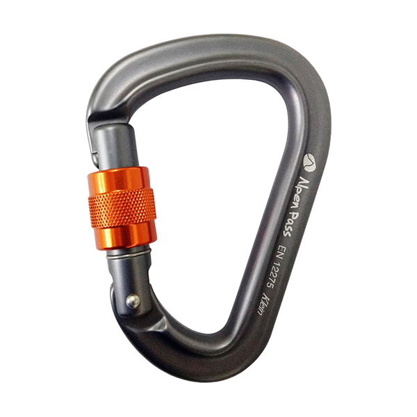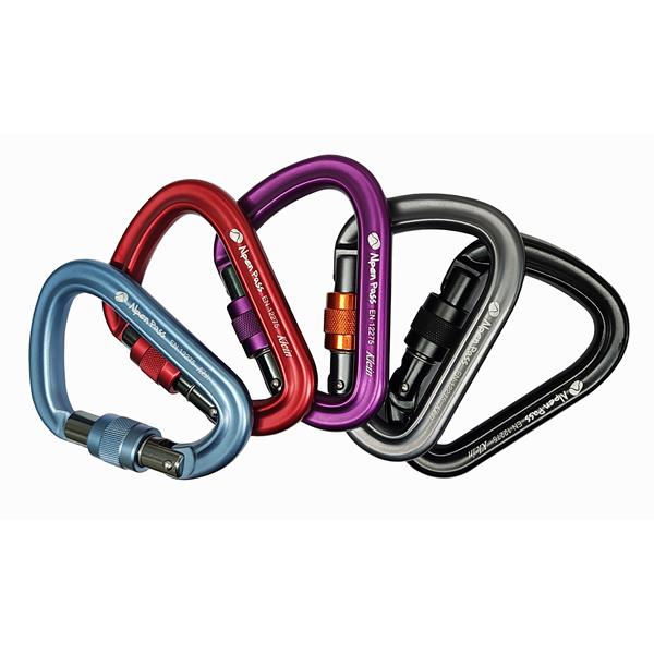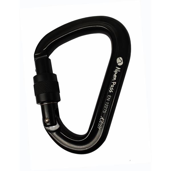 Mosquetão HMS com trava de rosca, dimensões ligeiramente menores e muito leve, fabricado em duralumínio liga 7075-T6, com trava de rosca e sistema keylock de gatilho, para ancoragens e uso com descensores, entre outras aplicações.
