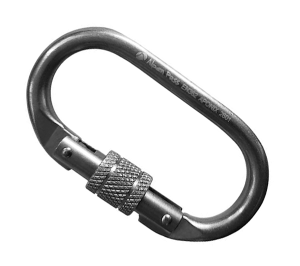Mosquetão oval, fabricado em aço inox SS316, com trava de rosca.