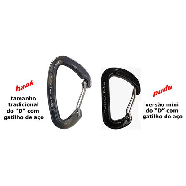 Micro mosquetão com corpo em alumínio e gatilho de aço (ou wire), sem trava, para montagem de costuras e outros usos. Modelo muito leve.