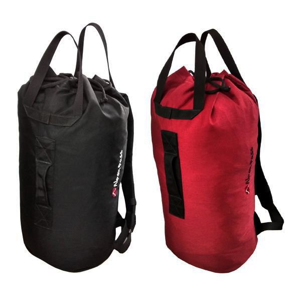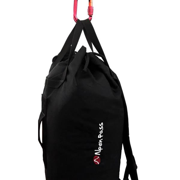 Uma ropebag grande, com vontade de ser haul bag também. Para uso em paredes verticais, militar, resgates e trabalhos. Mochila com 2 alças acolchoadas e reguláveis, com fecho na altura do esterno (peito). Formato tubular para não haver cantos perdidos e facilitar o içamento.