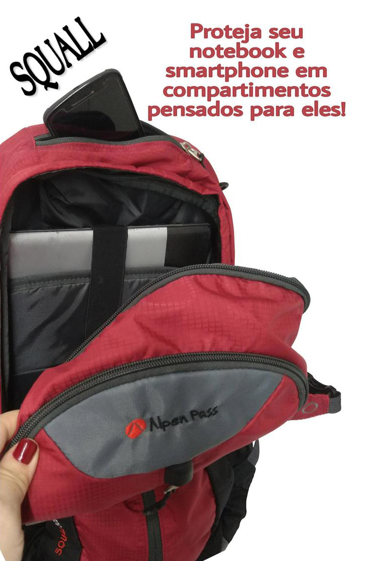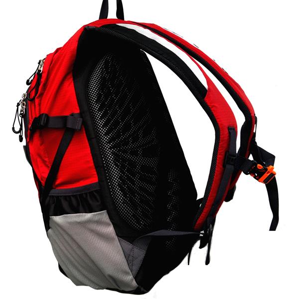 Mochila fabricada em nylon (fundo extra resistente em nylon 1680D/PU e corpo em nylon 400D e 420D ripstop) e com fivelas também de poliamida. Alças dos ombros acolchoadas, ergonômicas e reguláveis. Painel costal com placa de interna EVA para maior conforto e ventilação mesmo com a mochila pesada. Fivela esternal com apito de emergência. Fitas de compressão nas laterais da mochila para ajuste ao volume da carga e alívio da pressão nos zíperes. Duas alças na frente da mochila que permitem amarrar algum objeto extra.