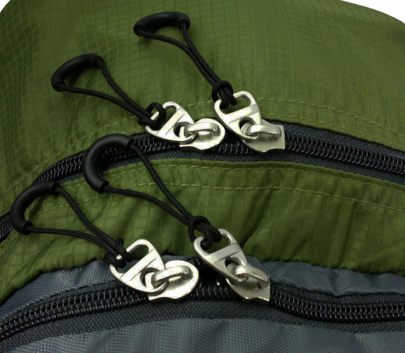 Segundo compartimento, à frente do maior, com sistema organizador. Zíperes duplos, com puxadores eficientes.